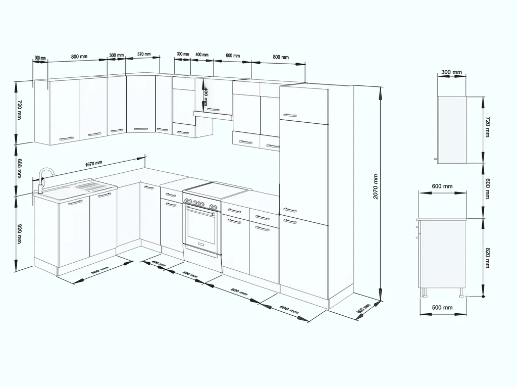 WinkelKüche Alina 310×170+ L-Form-Küchenzeile Eckküchenblock Weißlack