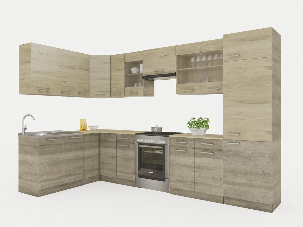 WinkelKüche Martha 330X170+ L-Form-Küchenzeile Eckküchenblock Trüffel-Sonoma