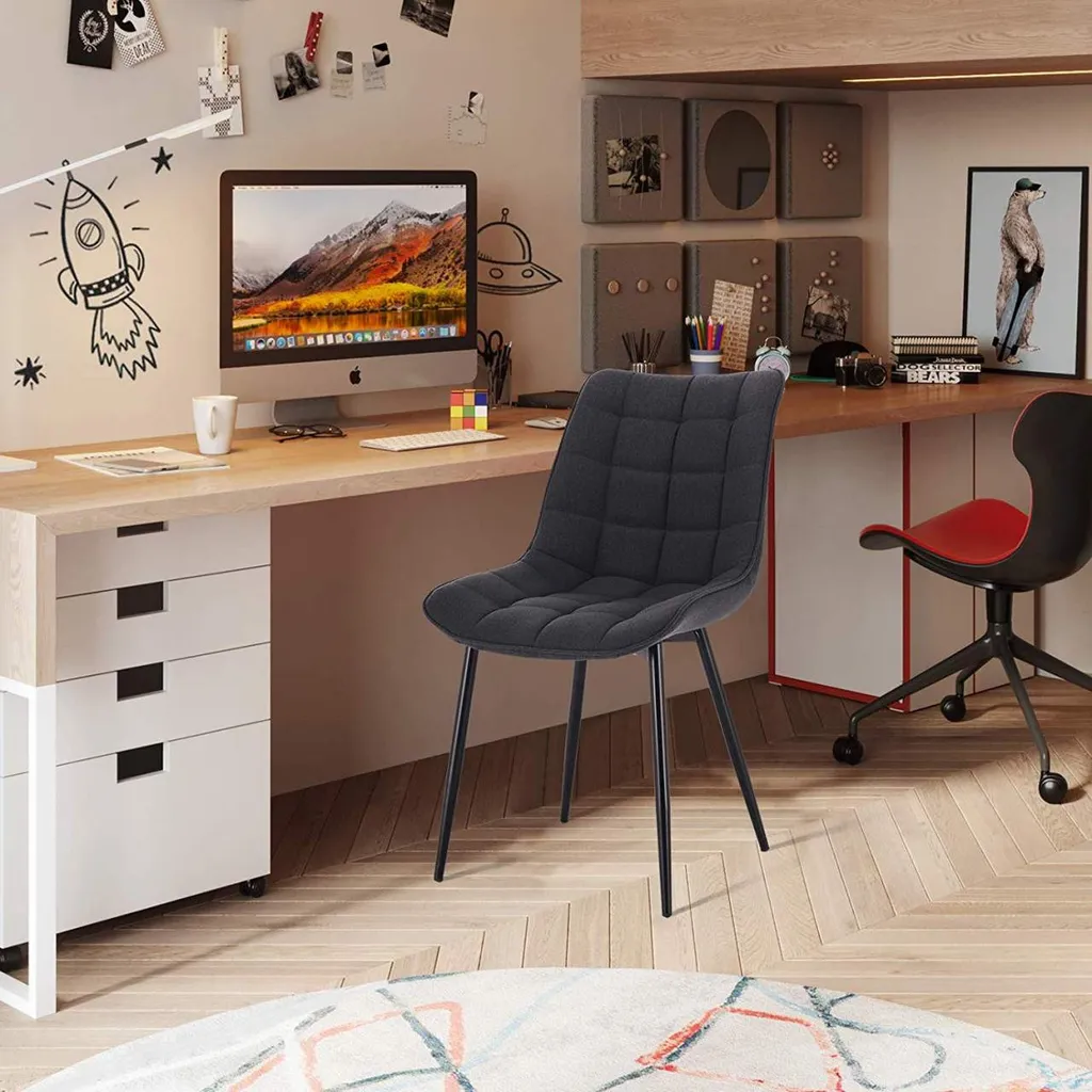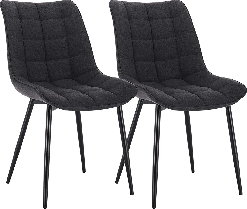 WOLTU Esszimmerstühle 2er-Set Küchenstuhl Polsterstuhl Mit Rückenlehne, Aus Leinen, Metallbeine, Dunkelgrau