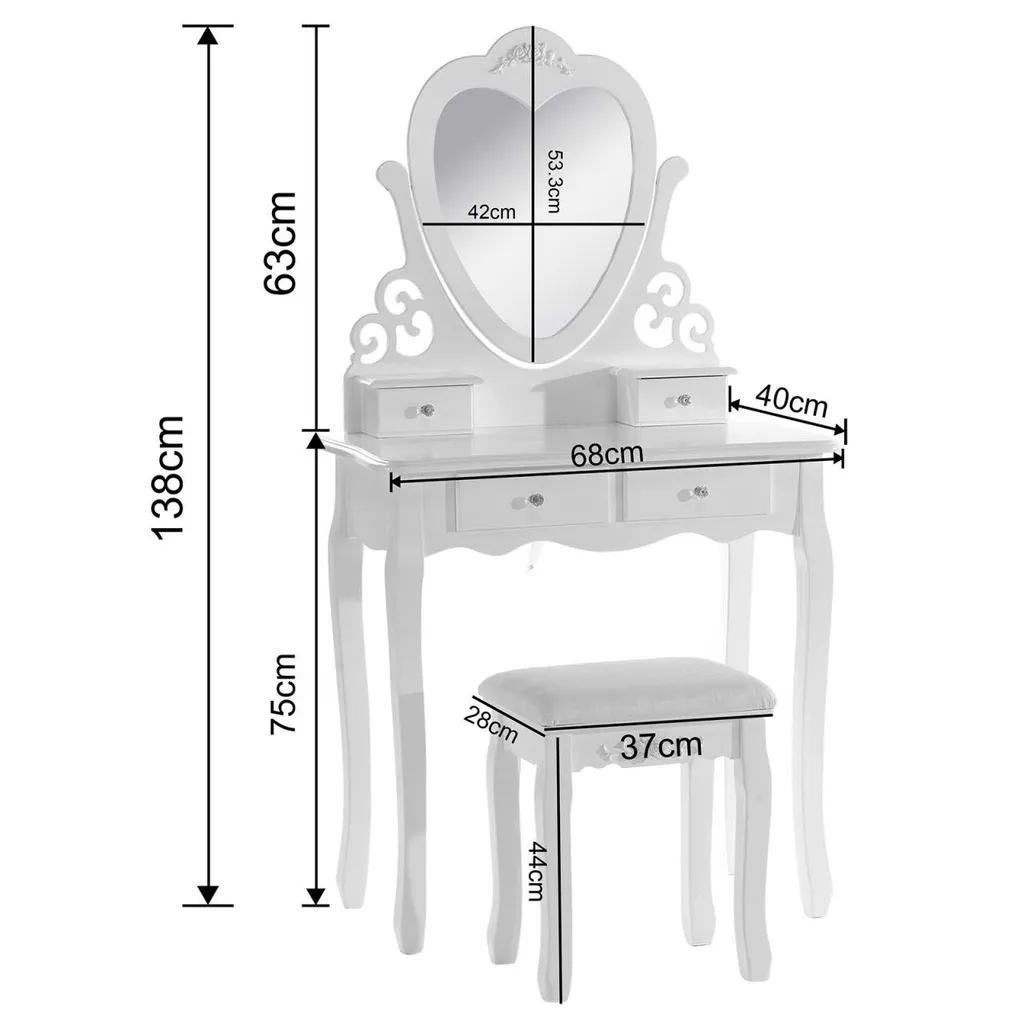 WOLTU Schminktisch Kosmetiktisch Frisiertisch Mit Spiegel Und Hocker 4 Schubladen 74,5 X 138 X 40cm, Weiß