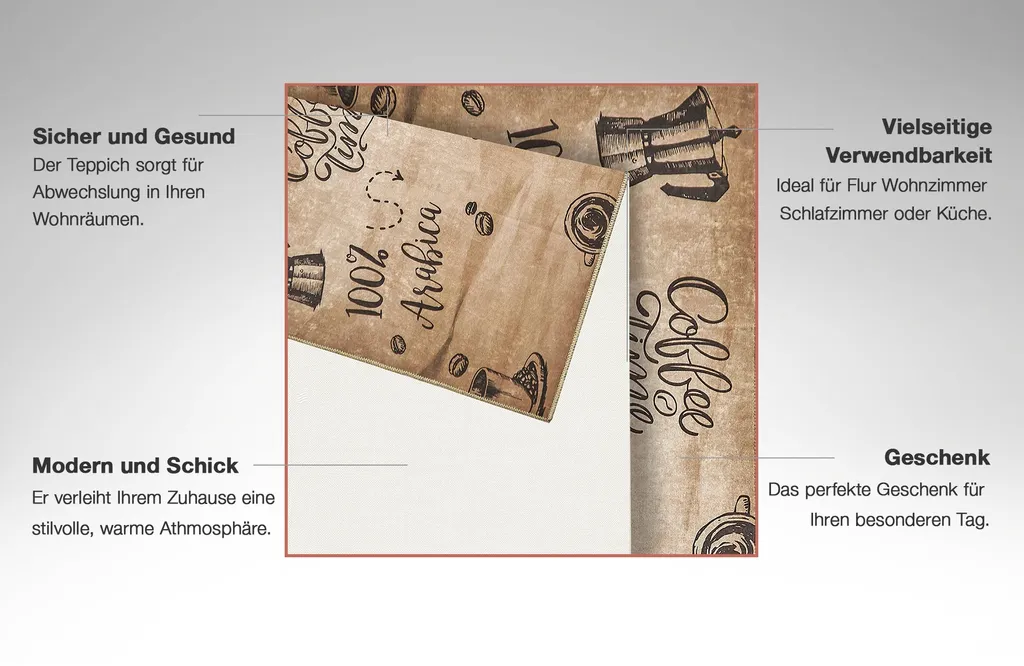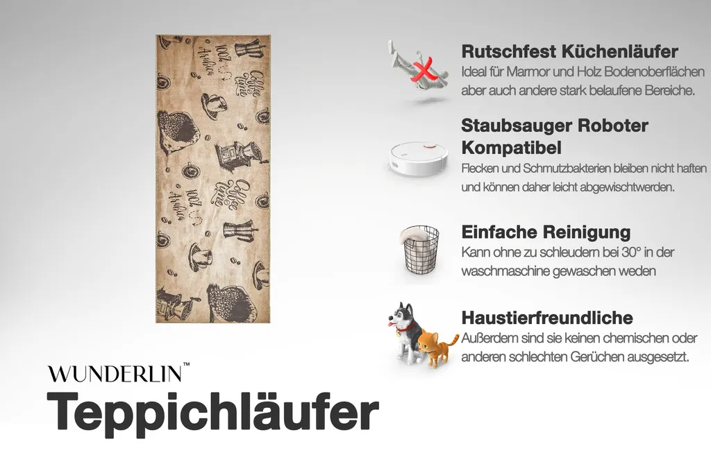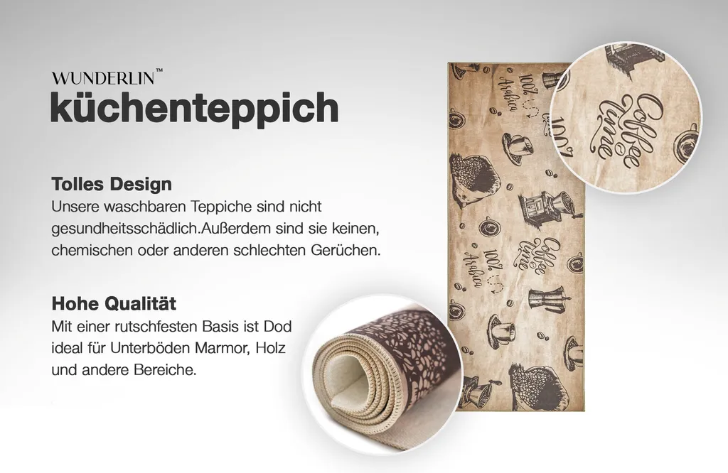 Wunderlin Läufer Flur Teppich Küche Collection Waschbarer Modernes Design, Wertvoll Verwenden Für Teppichlaeufer, Rutschfest Und Küchenläufer | Nützlich Küchenteppich Waschbar Size: 60 X 200 Cm Color: Coffee_Time
