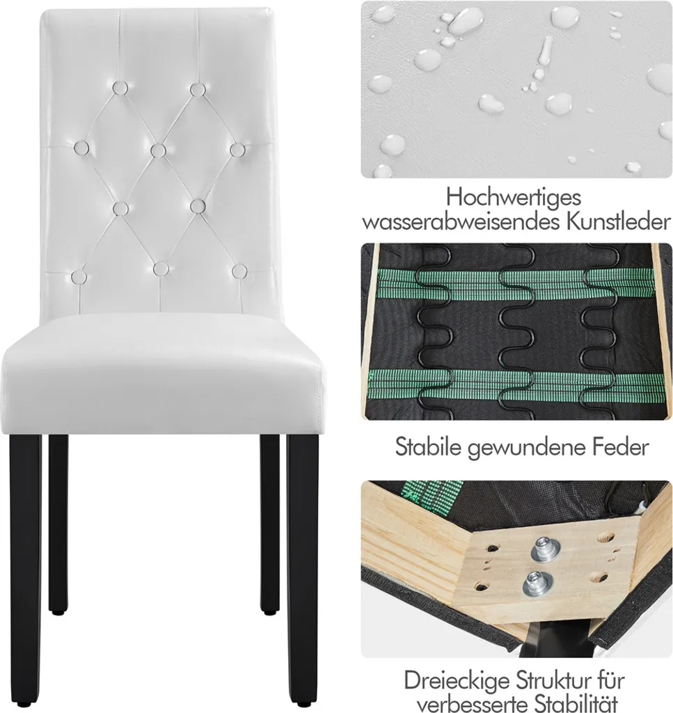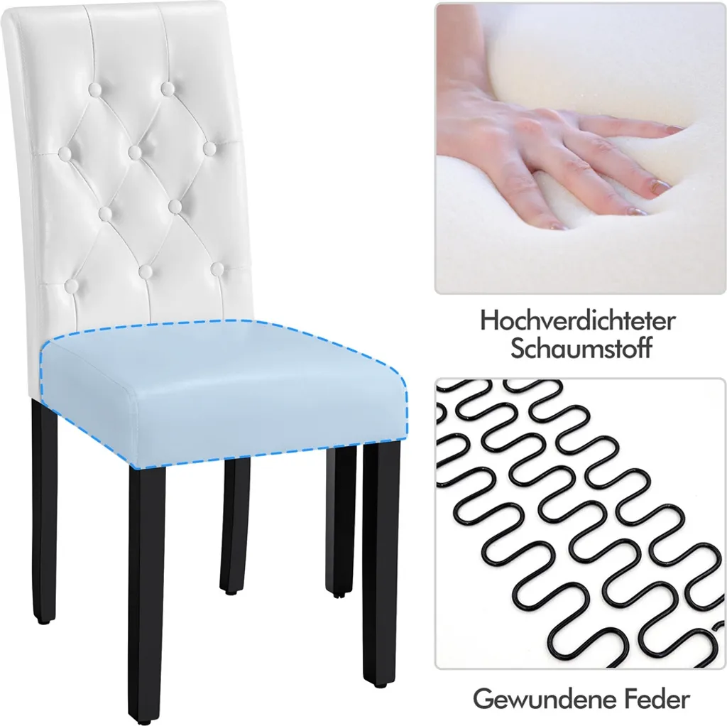 Yaheetech Esszimmerstühle 2er Set Küchenstuhl Polsterstuhl Mit Hoher Rückenlehne, Beine Aus Massivholz, Gepolsterte Sitzfläche Aus Kunstleder Weiß